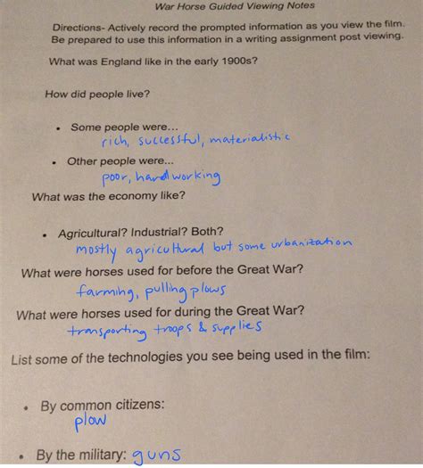 Read Online WAR HORSE GUIDED VIEWING NOTES Doc